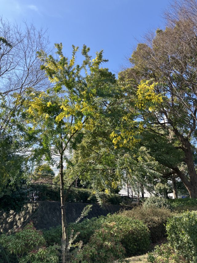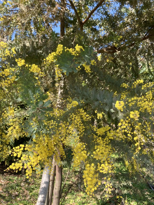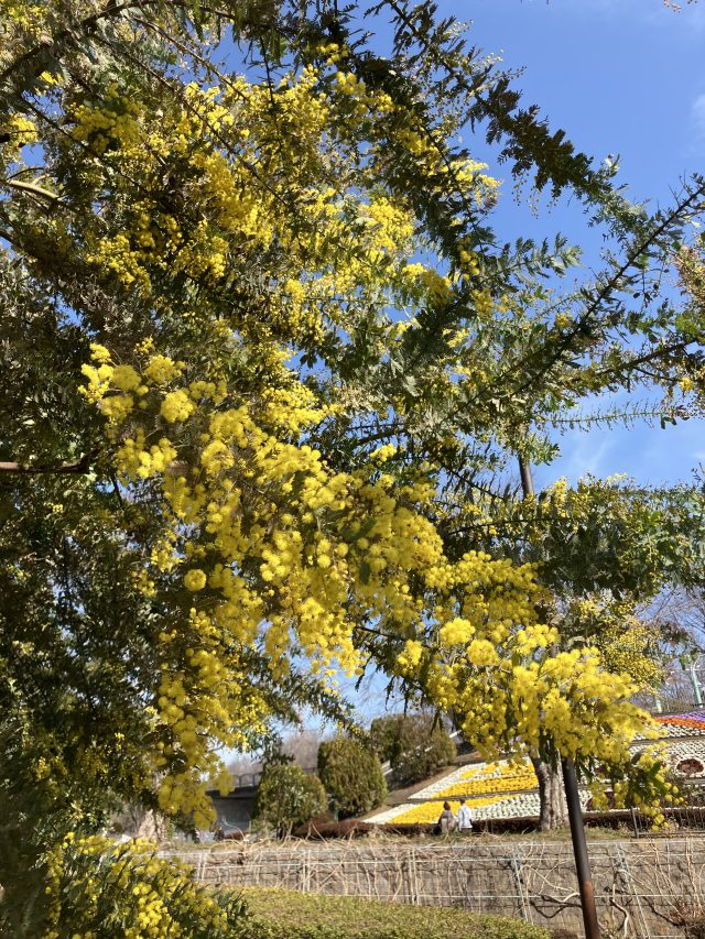 花の谷に植えられているミモザが見頃になっています。