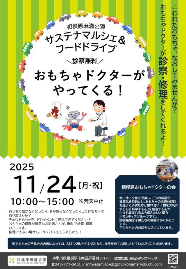 おもちゃドクターによるおもちゃの修理や、フードドライブの開催など。