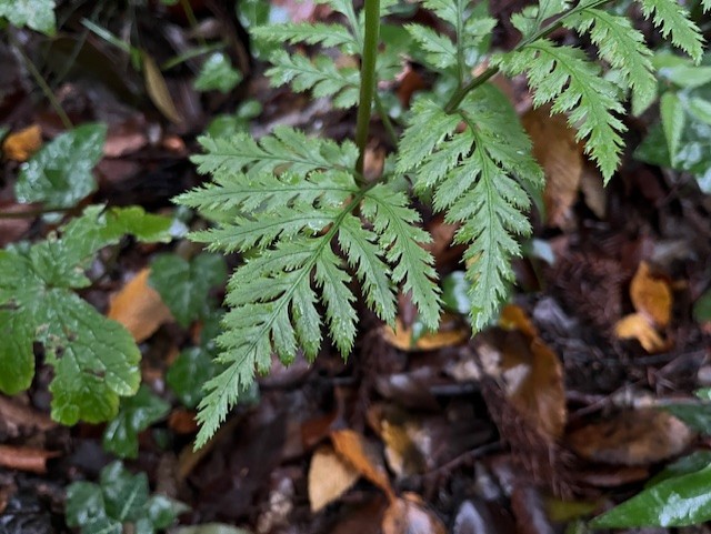 胞子葉の高さは約20~30cmであまり目立ちません。園路のすぐそばの落ち葉が積もった場所に生えていますので近寄って観察してみてください。