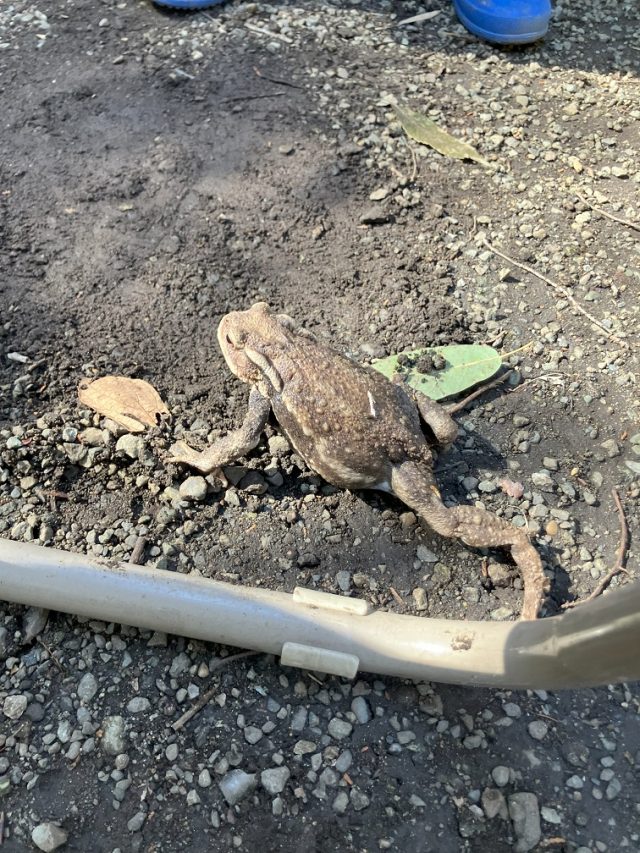 大きなカエル(アズマヒキガエル)が散歩してました。ビックリです!