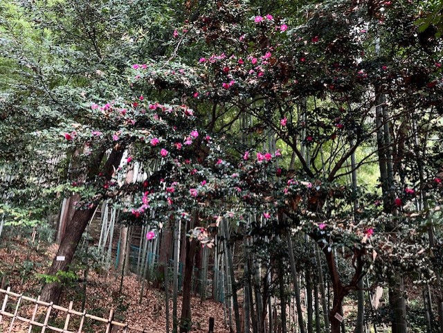 サザンカは下段公園の主園路から森林生態観察ゾーンへ向かう園路の入口にあります。