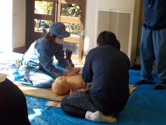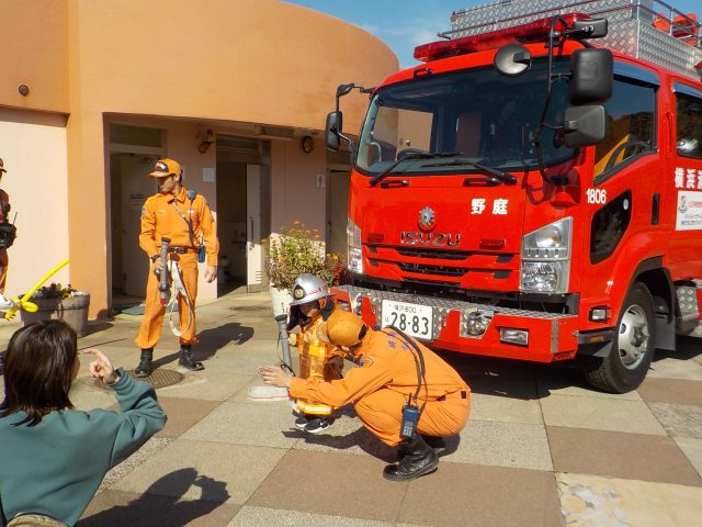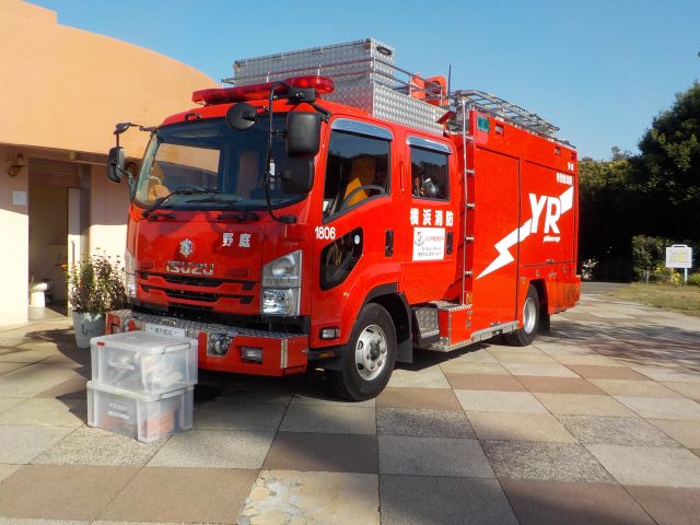 港南消防署野庭出張所の協力で消防車両の展示やAED訓練を体験する機会がありました。