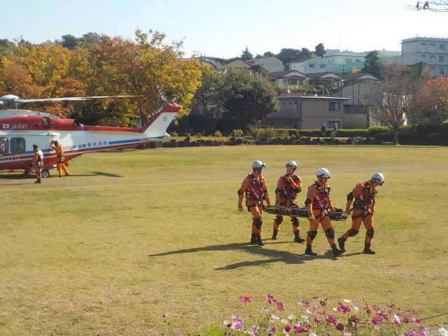 訓練は、災害現場で発生した傷病者をヘリコプターで搬送する訓練です。