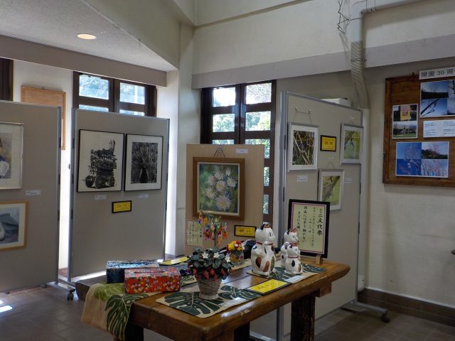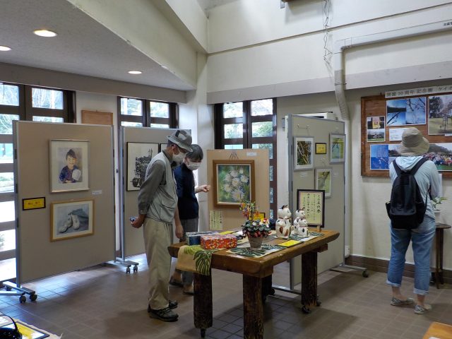 近隣の皆さんが、趣味で作られた絵画や切り絵など様々な作品を展示しております。