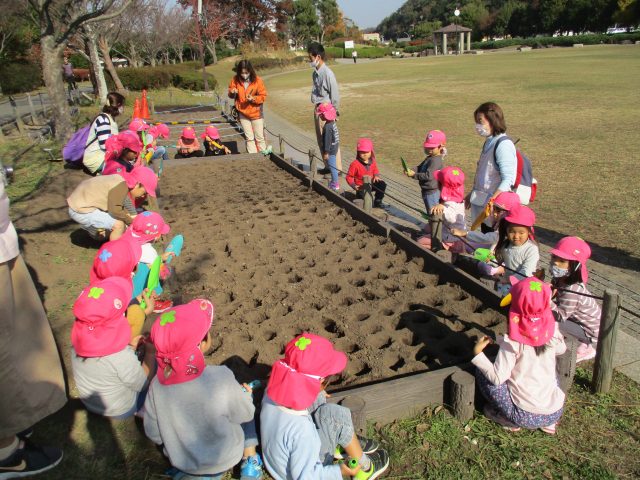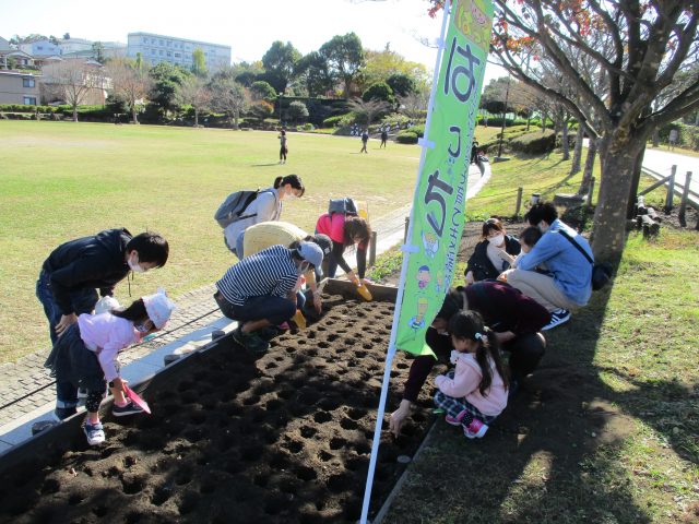 今年は11月17日にコスモス保育園、11月21日に港南区地域子育て支援拠点『はっち』にご協力をいただき、球根を植えました。