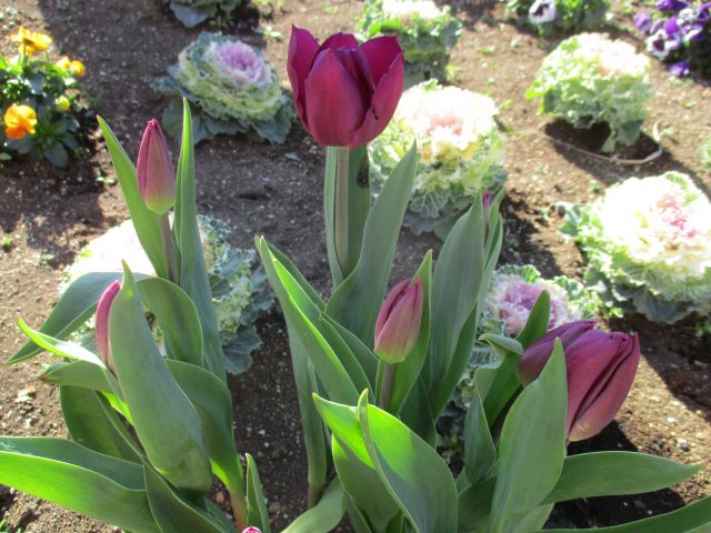 レストハウス前のメイン花壇のアイスチューリップが4色咲きそろいました!