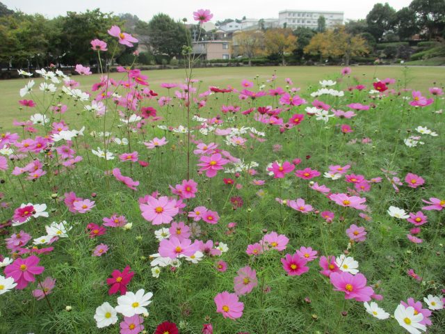 自由広場の側面にあるコスモスが綺麗に咲いてきました