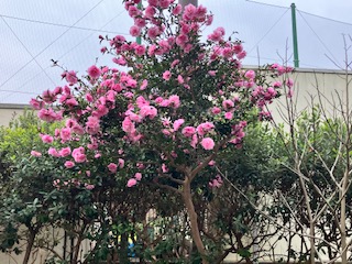 その中で、鮮やかに咲いているサザンカがとてもきれいです!