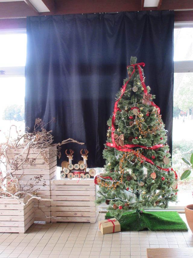 金井公園のレストハウスでは、クリスマスツリーを飾りつけしました。