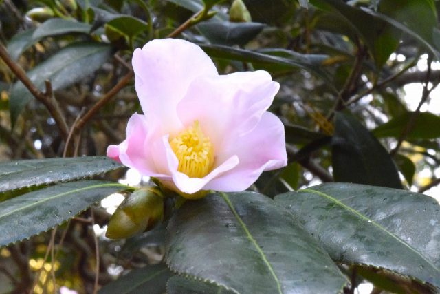 樹木園では肥後入日の海、ヤブツバキが開花始めです。