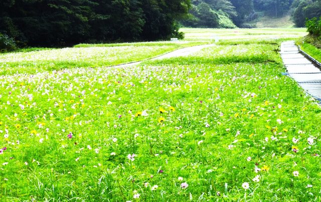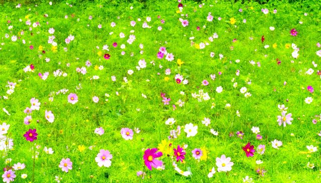 そのヒマワリを緑肥として利用し9月にコスモスを手撒きで