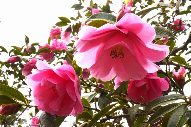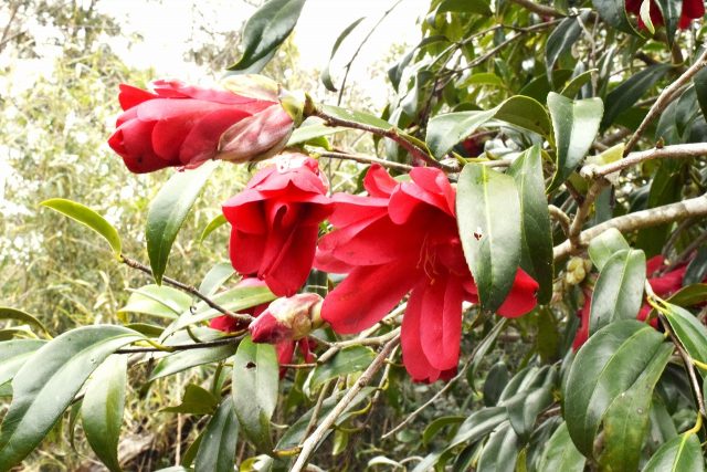 つばき園ではつばきの開花ラッシュです。