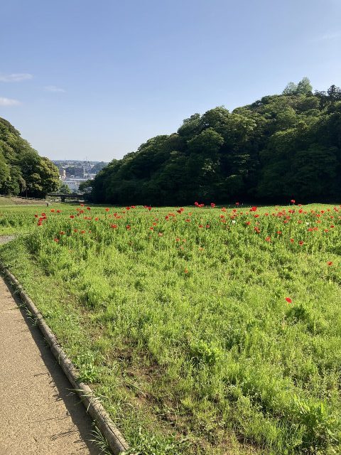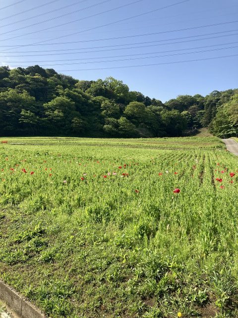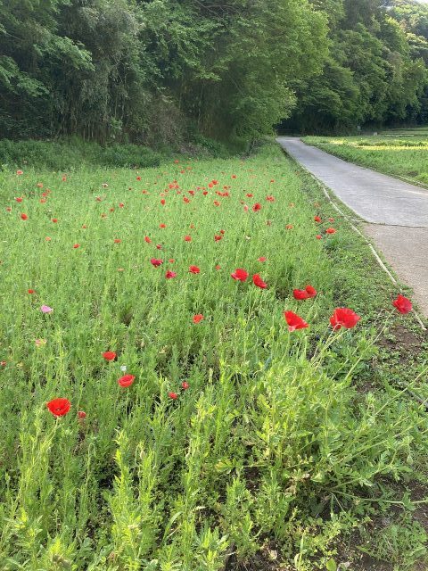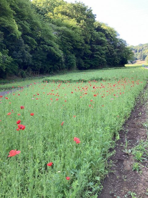 ポピー園の主役のシャーレーポピーが開花始めです。