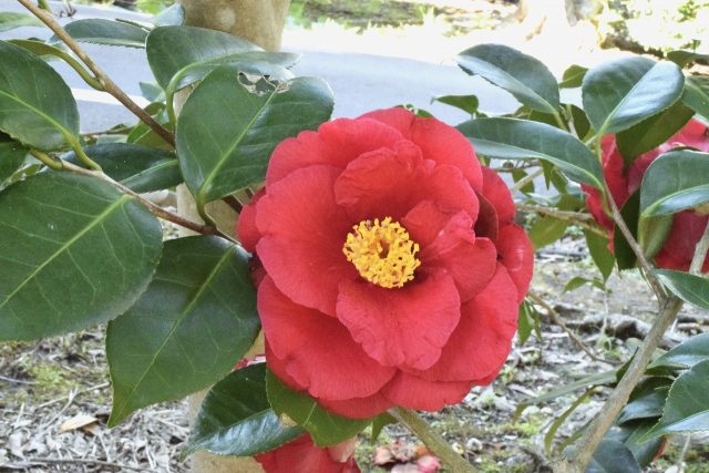 つばき園ではクレイマーズ・シュープリームが開花しました。