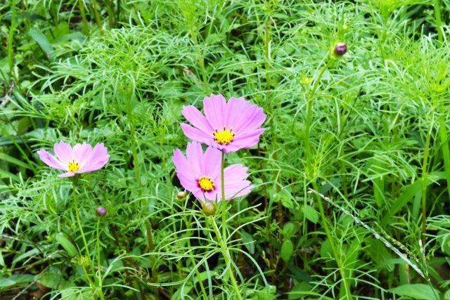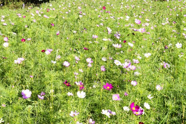 コスモス園のセンセーションが背丈は低いですが、一分咲きです。