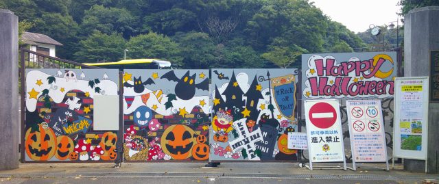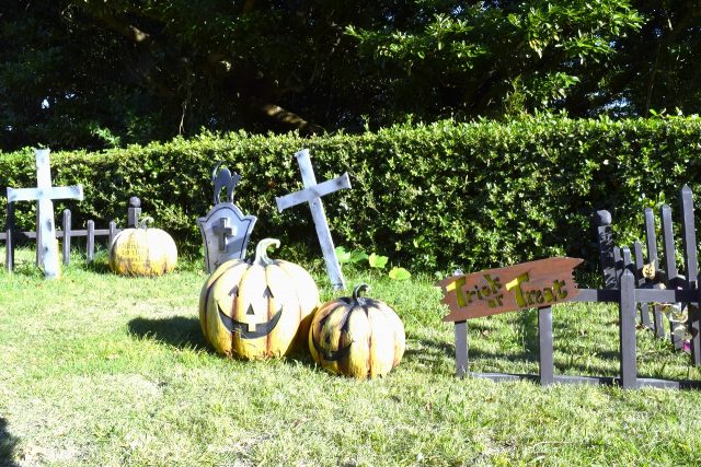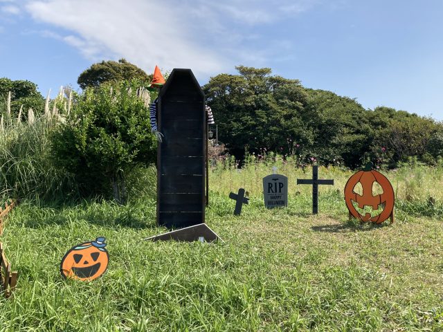 くりはま花の国でハロウィンの装飾やフォトスポットが登場しました。