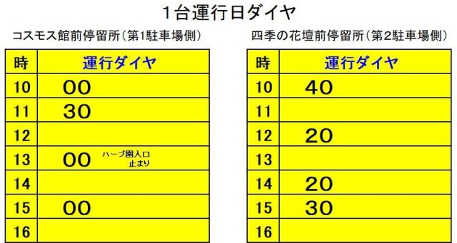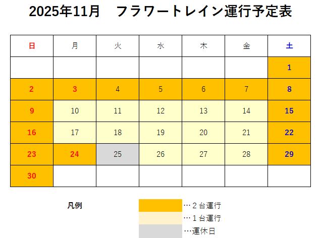 2025年11月 フラワートレイン運行日及び運転ダイヤのご案内です。
