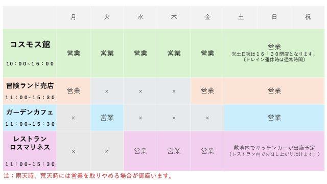 2026年4月からの公園内飲食施設の営業に関して、以下の内容での営業となります。