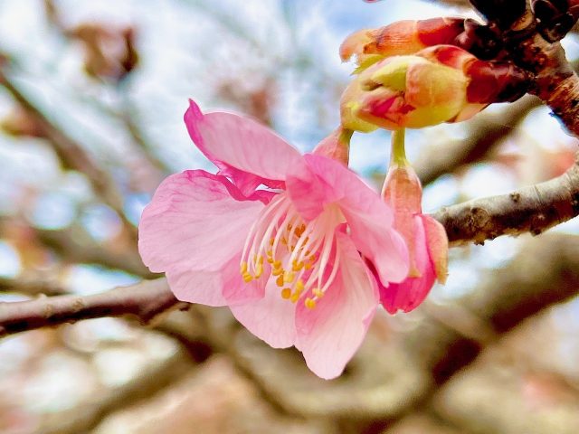 蕾が色づき始めた『カワヅザクラ』。