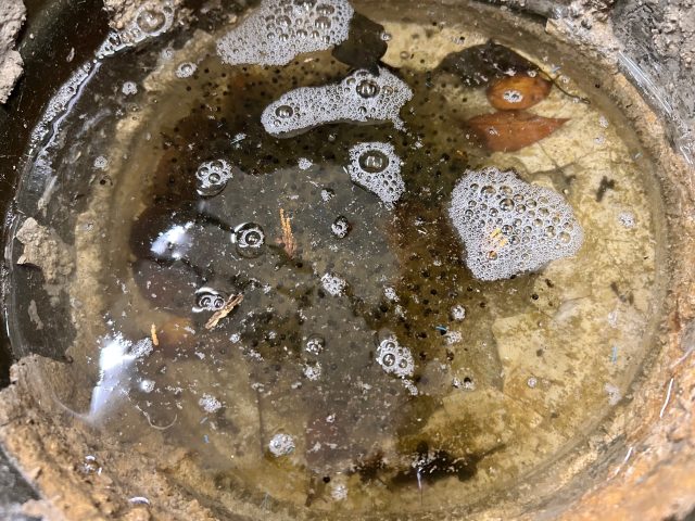 ヒキガエルの卵塊も発見!