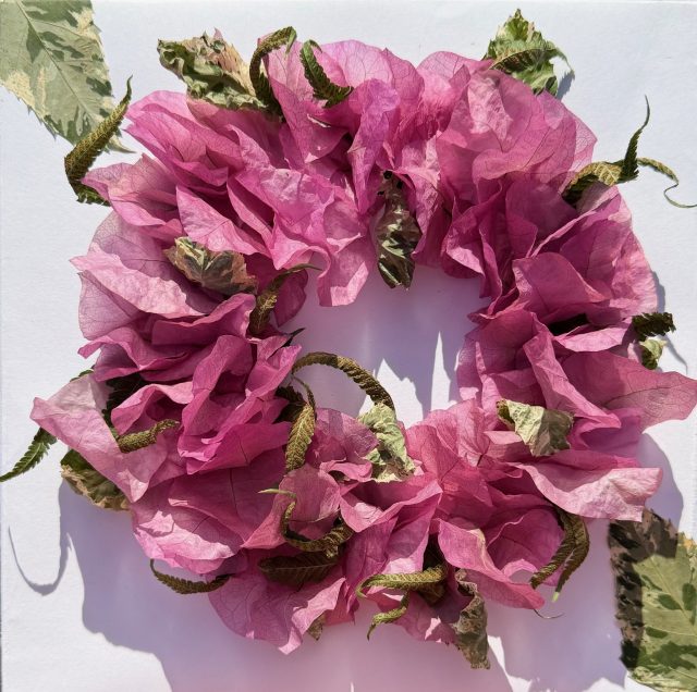 鮮やかなブーゲンビリアや南国の葉を使ってキャンバスボードを作ります♪
