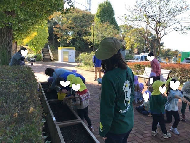 岡村幼児園のみなさんにチューリップの球根を植えてもらいました🌷