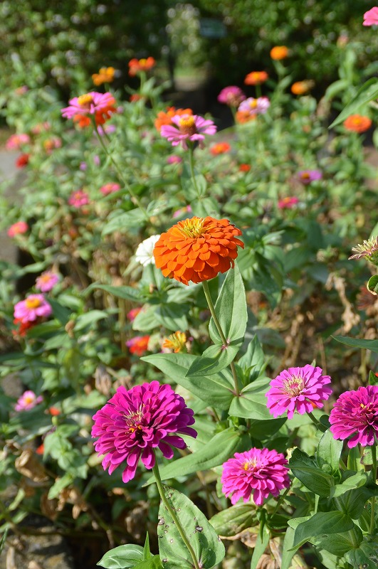 ジニアは矮性~高性、また花の形や色も様々、
