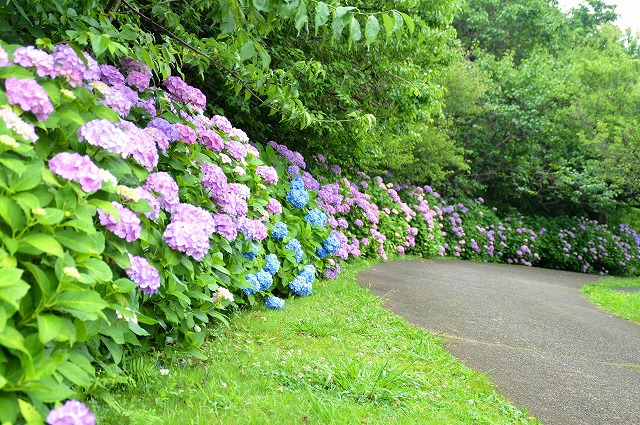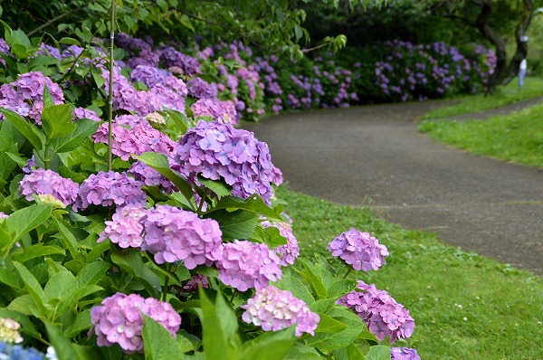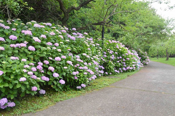 梅園の外周を縁取るように植栽された紫陽花。特に今が見頃です!
