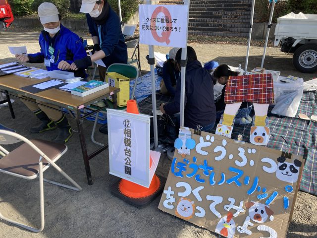 相模台公園も出展し、防災クイズと防災スリッパ作りをご用意いたしました。