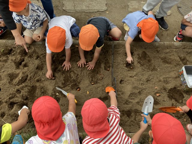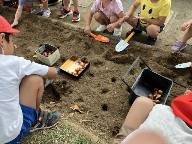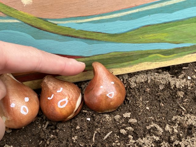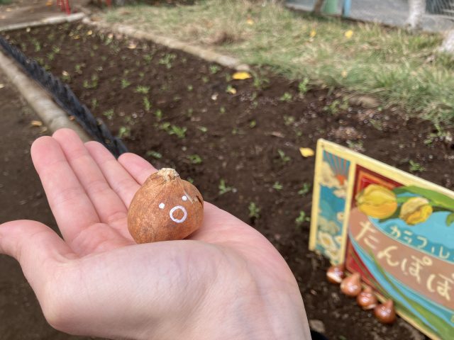 たんぽぽ保育園のみんなにも理解してもらえるように、今回の球根もお顔付きです!