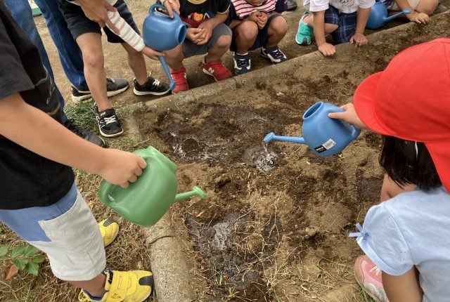 夏のヒマワリの種まきに引き続き、たんぽぽ保育園のみなさんが来てくれました!