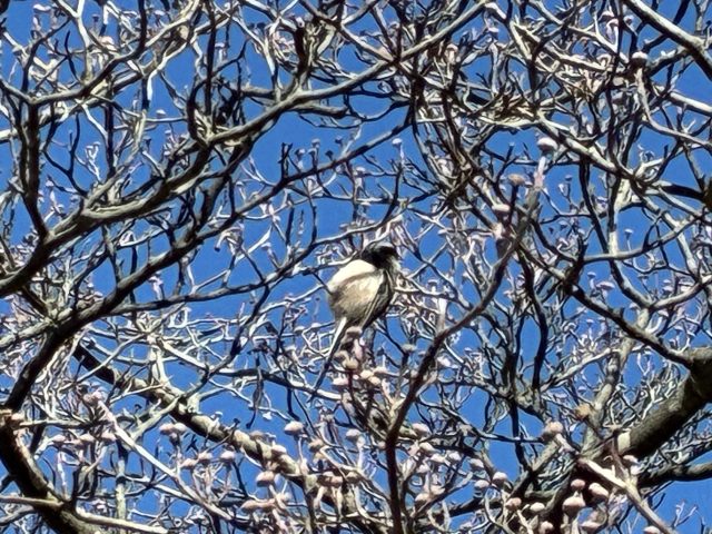 ハナミズキの木にエナガがやってきました。