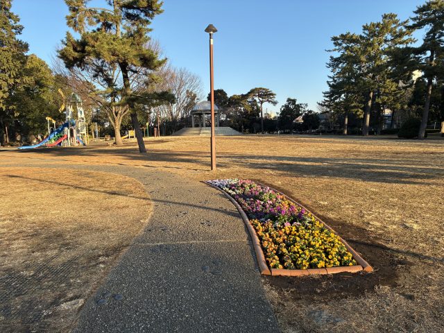 場所は集いの広場と芝生広場の間の園路沿いです。