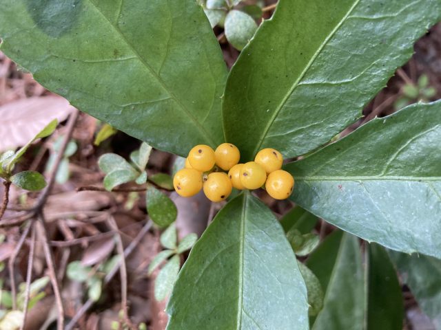 今回は黄色い実のなるセンリョウ、