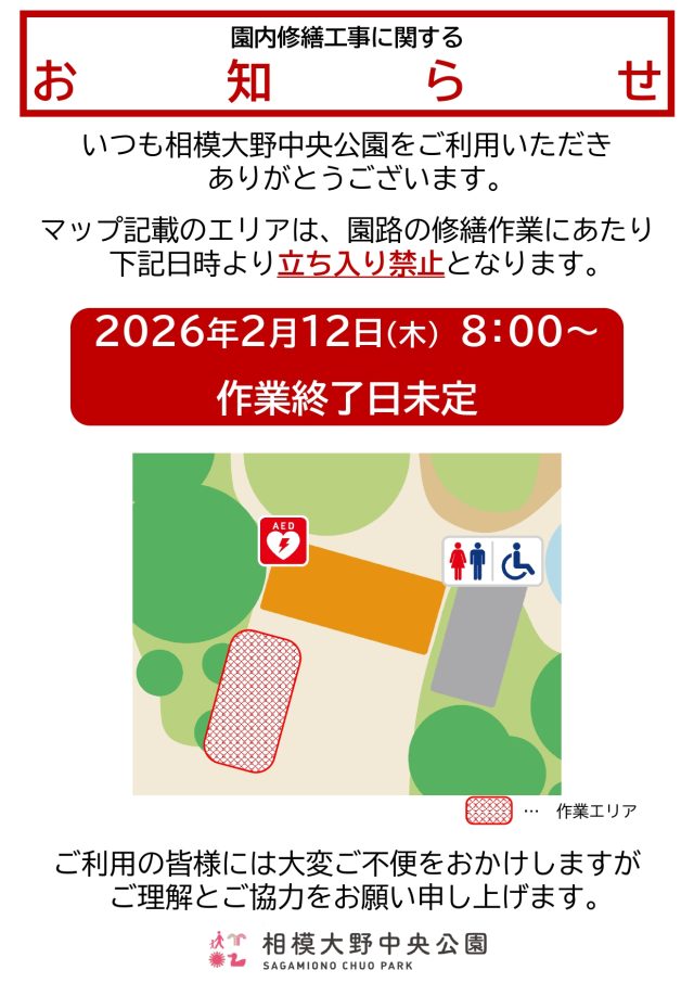 園内修繕工事に関するお知らせ 2月12日(木)~
