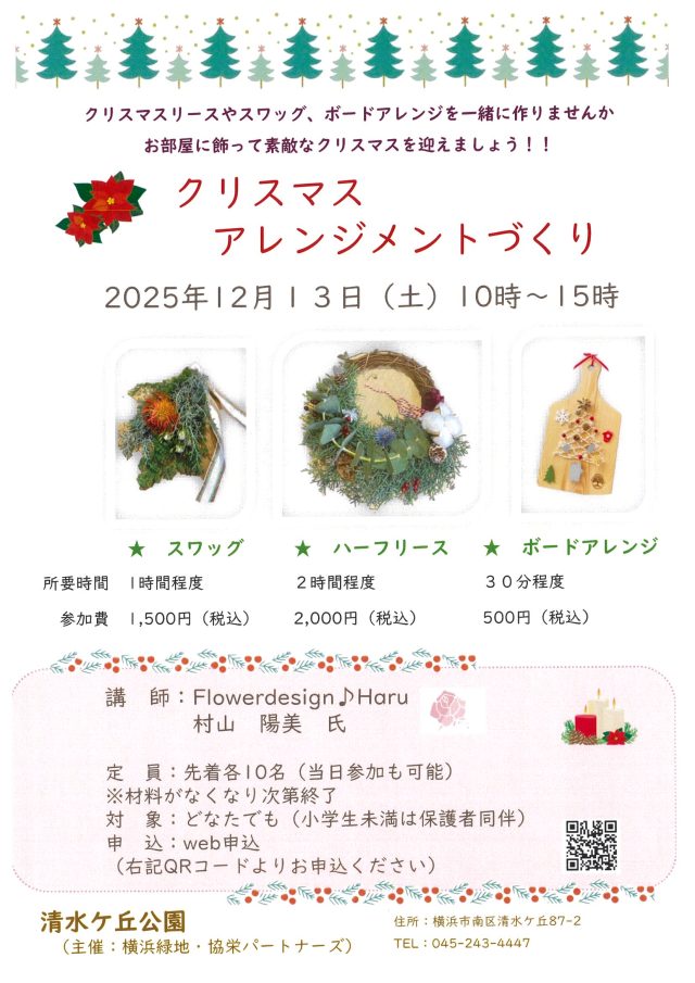 クリスマスリースやスワッグ、ボードアレンジを作って素敵なクリスマスを迎えましょう‼