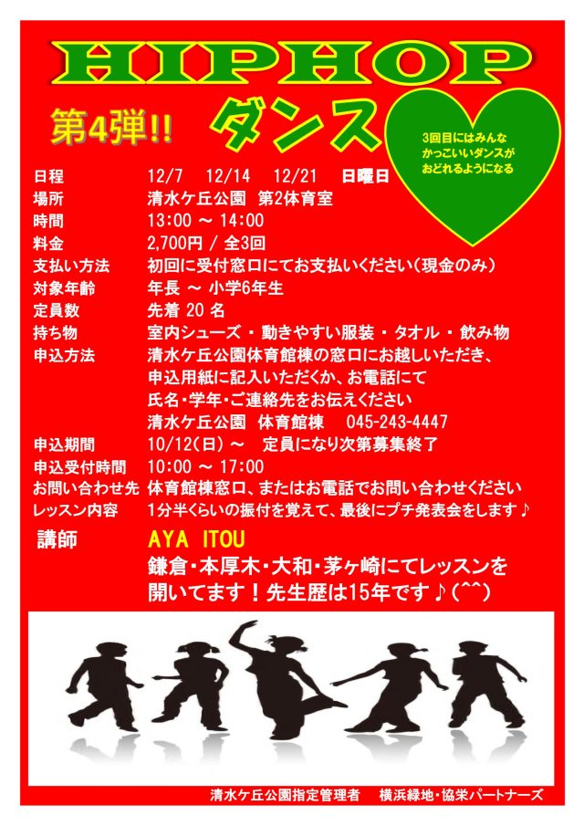 『HIPHOPダンス』、第4期の募集のご案内です♪