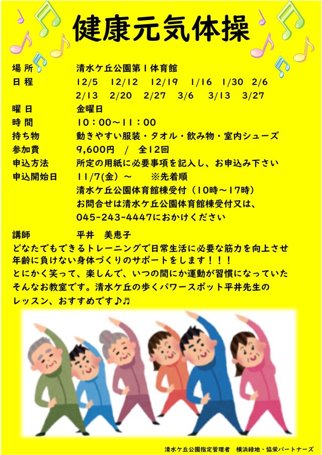 お問合せは清水ケ丘公園体育館棟受付又は、045-243-4447におかけください。