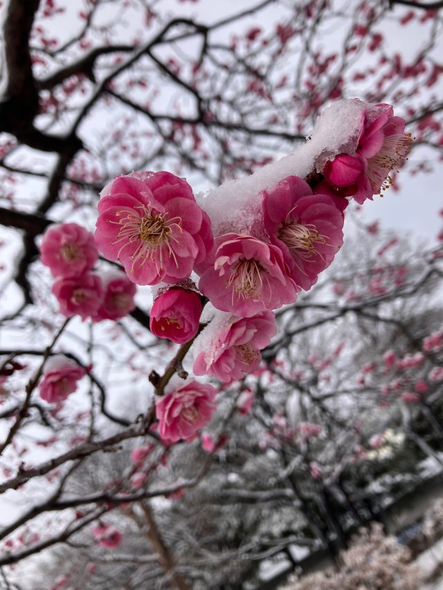 紅梅と白い雪・・・なんだかとても静かで素敵な風景です。