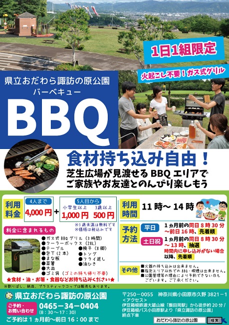 おだわら諏訪の原公園では、1日1組限定でバーベキュー会場をご用意しています。