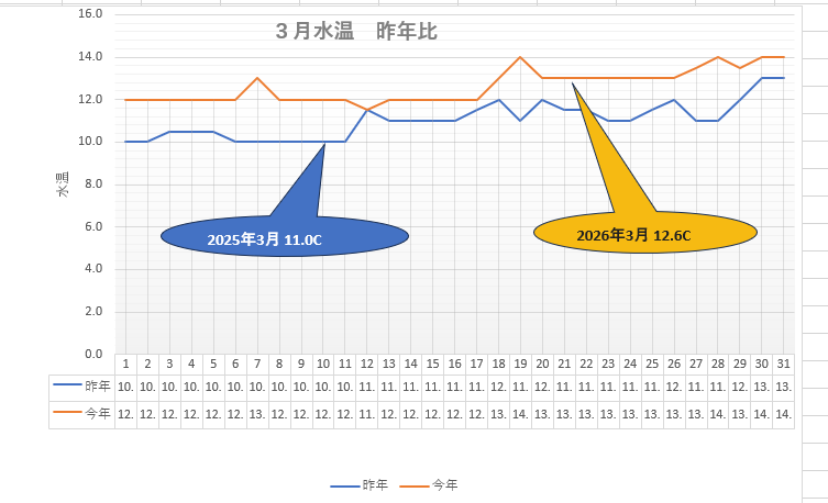 参考までに今年と昨年の水温状況を載せました。