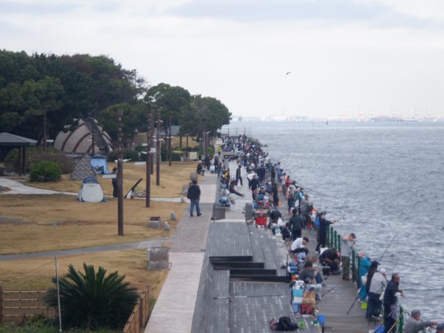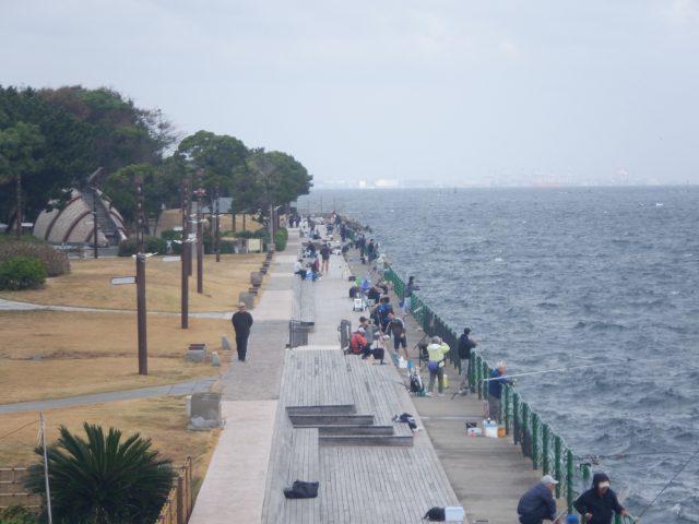 本日は、三連休の中日で、朝から駐車場は満車、釣り場は混雑しています。