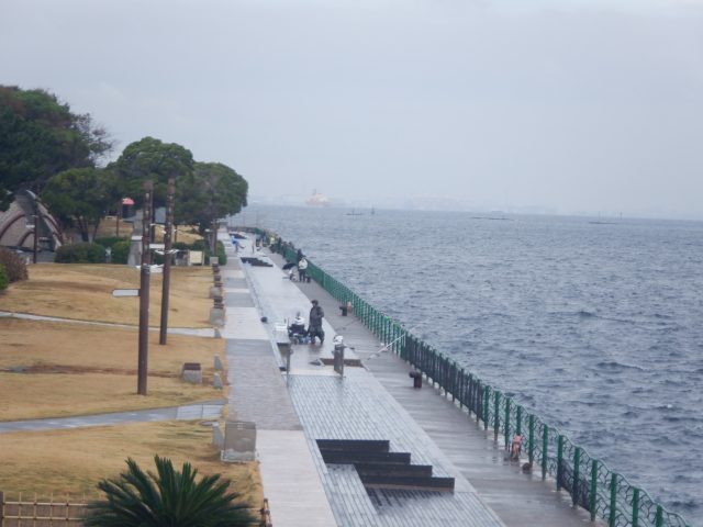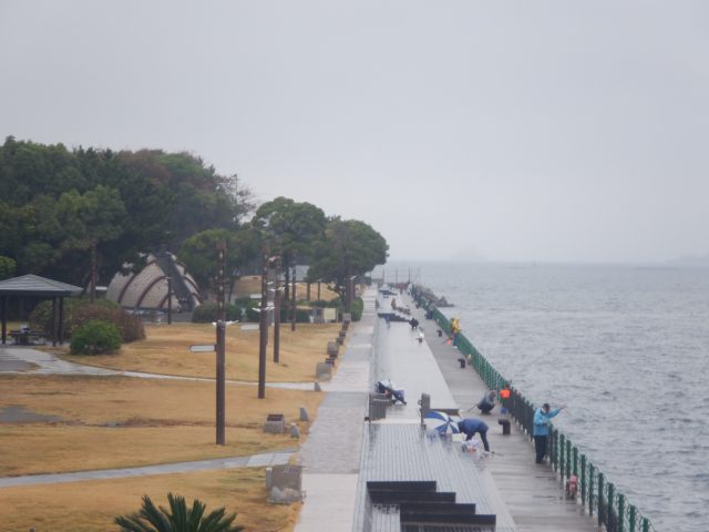 白波が立っていますので、波しぶきで釣り場が潮をかぶる可能性があります。