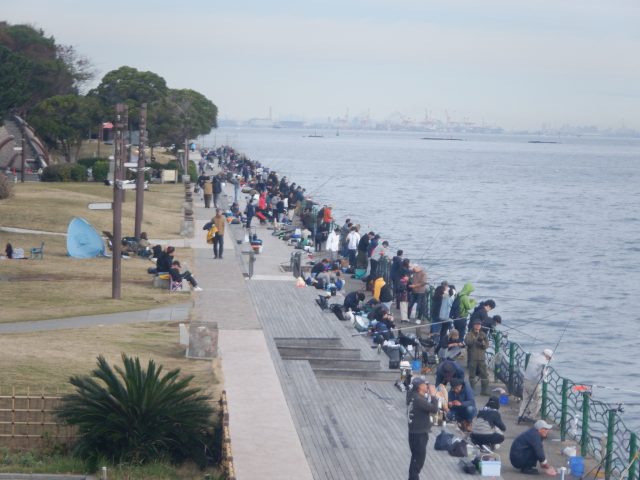 お早うございます。本日は朝から釣り場は混雑しております。お互いに譲り合ってトラブルの無い様にお願い致します。