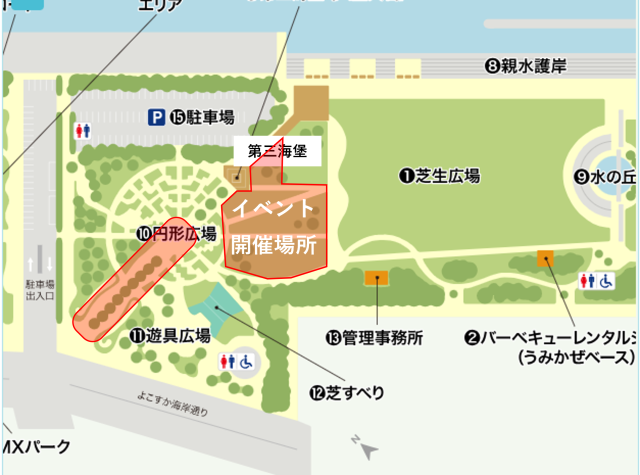 イベント(うみかぜ公園冬まつり)開催のため芝生広場及び円形広場の一部を