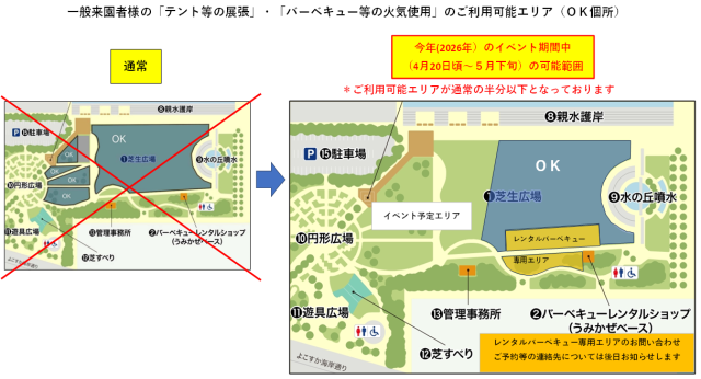 また、芝すべり場もイベント区画内となりご利用いただけない予定です。