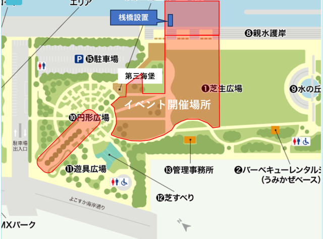 利用制限を行います。(うみかぜ公園マップ赤枠の範囲)