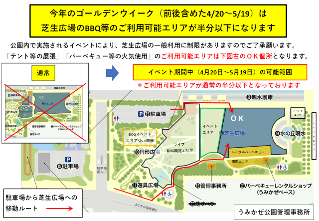 [GW情報第三弾」GW中(前後含む4/20~5/19)に芝生広場をご利用される方へ