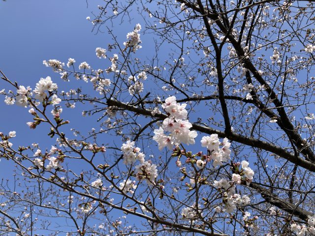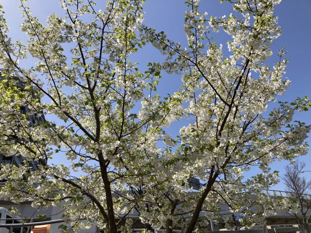 ワーキングスペースのコルセール横の白い桜はほぼ満開になっています。