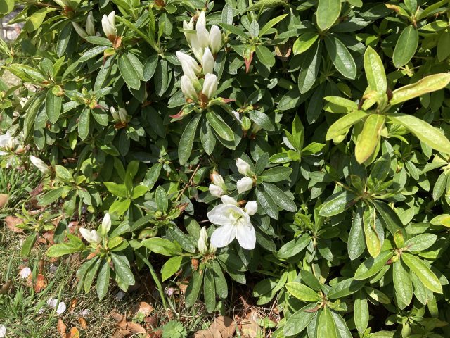 ワーキングスペースのコルセール横では、白いツツジが咲き始めました。